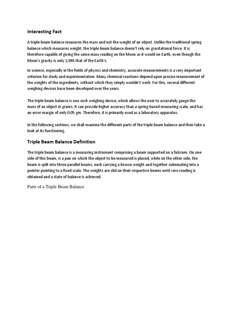 Triple Beam Balance Scale Labeled - Lada Sidorova The triple beam balance is an instrument used to measure mass very precisely. In science it is important that students know how to use a . A triple beam balance scale is relatively inexpensive and needs no electricity, but it can measure weight with a high degree of accuracy. Such devices typically have a reading error of ±0.05 grams.