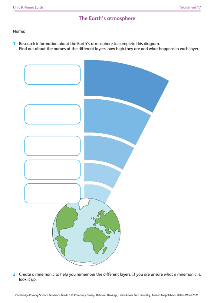 PDF Graphing the Atmosphere - Weebly the atmosphere. 11. The churning air in the troposphere helps determine the ____ of a place. 12. The atmosphere is composed of five ____ . 13. The ____ layer is near the top of the stratosphere. DOWN 1. This force holds Earth's atmosphere in its place. 2. This layer holds almost all of the water vapor in the atmosphere, as PDF Layers of the Atmosphere - Virginia atmospheric layers, using some of the materials mentioned under Materials above. The model should be designed to reflect an accurate scale of Earth and the layers of the atmosphere. It is important for students to choose for themselves the materials to use to represent what they have learned about the layers of the atmosphere. All models should Label the Earth's Atmosphere Printout - Enchanted Learning Label the Earth's atmosphere in this printable worksheet. EnchantedLearning.com is a user-supported site. Site members have full access to an ad-free, print-friendly version of the site. 🌍 FREE Layers of the Earth Worksheets - 123 Homeschool 4 Me Use these free, printable Layers of the Earth worksheet pages to practice and learn more about the many different layers of the earth. These are handy for elementary age science lessons with kindergarteners, grade 1, grade 2, grade 3, grade 4 students and grade 5.