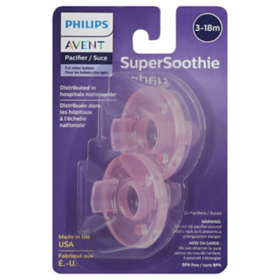 Avent Super Soothie Pacifier (3M +), Assorted Colors Shop Baby & Kids Feeding Avent Super Soothie Pacifier (3M +), Assorted Colors Roll over image to zoom in Avent Super Soothie Pacifier (3M +), Assorted Colors 2 pk $3.83 ($1.92/pack) Product description The pacifier distributed in hospitals nationwide. Bigger for older babies. Used by medical professionals to calm newborns. BPA free.