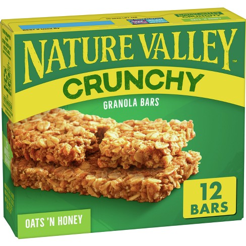 Nature Valley™ Fiber One™ Granola Bars Variety Pack (7 ct) 1.5 oz Nature Valley™ and Fiber One™ granola bar variety pack case includes: 3 boxes of 16 ct. Nature Valley™ Oats n' Honey Crunchy Granola Bars (double bar), 2 boxes of 16 ct. Fiber One™ Oats & Chocolate Chewy Bars, 1 box of 16 ct. Nature Valley™ Sweet & Salty Peanut Granola Bars, and 1 box of 16 ct. Nature Valley™ Trail Fruit & Nut Chewy Granola Bars. EWG's Food Scores | Nature Valley Granola Crunch Bars, Oats 'N Honey 120. % Daily Value (based on a 2,000 calorie diet and adult bodyweight) Update the values for someone: -age- 1-3 years 4-8 years 9-13 years 14-18 years 19-30 years 31-50 years 51-70 years over 70 years. -gender/life stage- male female pregnant female lactating female. QUICK FACTS: 6.0. 6.0 %. Total Fat 4 g. Amazon.com: Nature Valley Granola Bars Variety Pack, 8.94 oz, 12 ct ... This item: Nature Valley Granola Bars Variety Pack, 8.94 oz, 12 ct $3.99 ($0.45/Ounce) Sunbelt Bakery Oats and Honey Chewy Granola Bars Value Pack (15 Count) $3.24 ($0.23/Ounce) Welch's Fruit Snacks, Mixed Fruit, Gluten Free, Bulk Pack, 0.9 oz Individual Single Serve Bags (Pack of 40) $8.48 ($0.21/Count) granola bars box granola bars crunchy