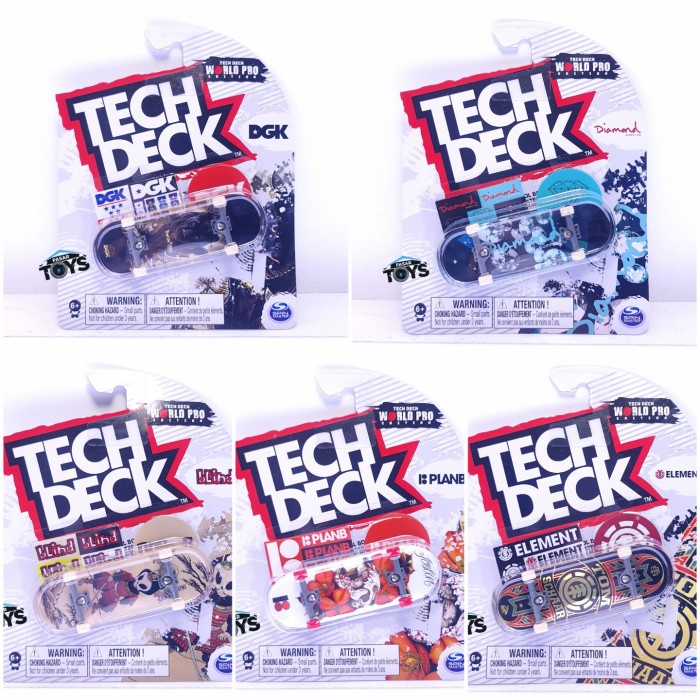 Tech Deck Offers fingerboards with licensed graphics from brands like Birdhouse and World Industries.