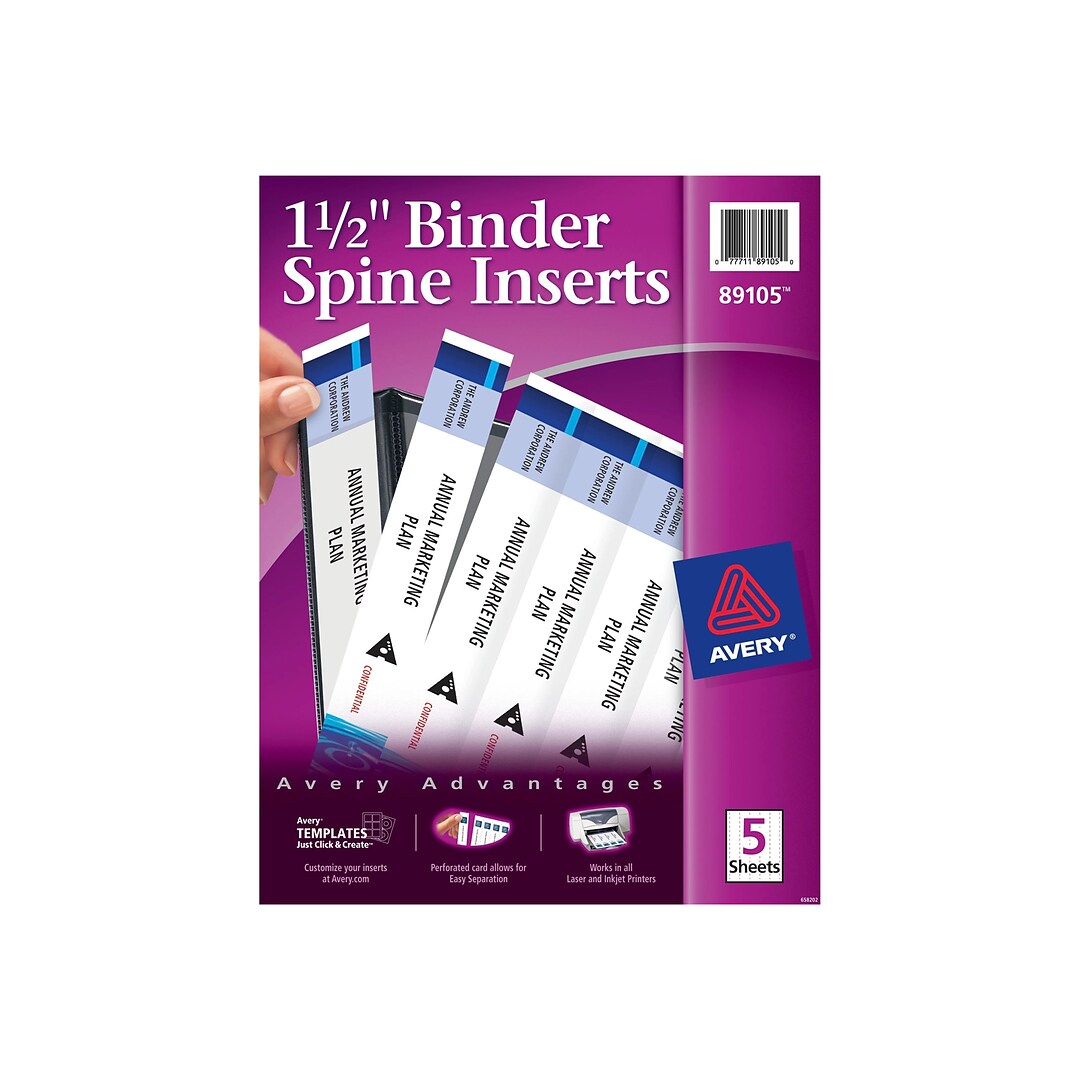 Avery Binder Spine Inserts, 1.5" Spine Width, White, 5 Inserts/Sheet, 5 Sheets/Pack (89105)