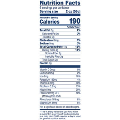 Barilla Veggie Rotini Pasta, 12 oz - Kroger Nutrition Facts servings per container Serving size 2oz (56 g) Amount per serving Calories 190 % Daily value* Total Fat 1g 1.28% Saturated Fat 0g 0% Trans Fat 0g Cholesterol 0mg 0% Sodium 5mg 0.22% Total Carbohydrate 41g 14.91% Dietary Fiber 4g 14.29% Sugar 2g Protein 8g Calcium 20mg 2% Iron 2mg 10% Magnesium 34mg 8% Niacin 5mg 30%