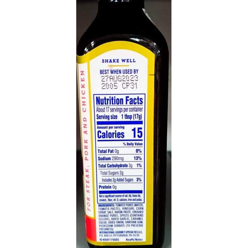 A-1 steak sauce nutrition label