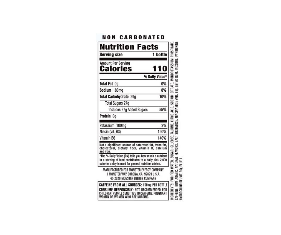 Monster hydro nutrition label