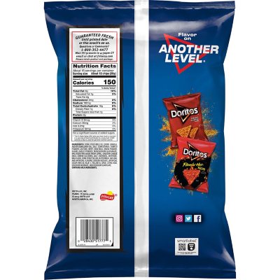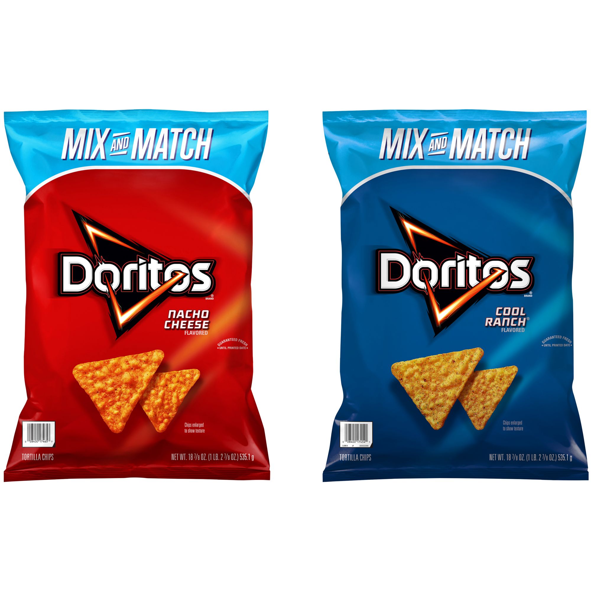 Doritos Cool Ranch Flavored Tortilla Chips, Party Size, 15 oz Bag Nutrition facts. Refer to the product label for full dietary information, which may be available as an alternative product image. ... Doritos cool ranch is a good snack.Frito Lays is great at making chips.They are crunchy and flavorful.The chips have a ranch dressing taste.Thanks Frito Lay.