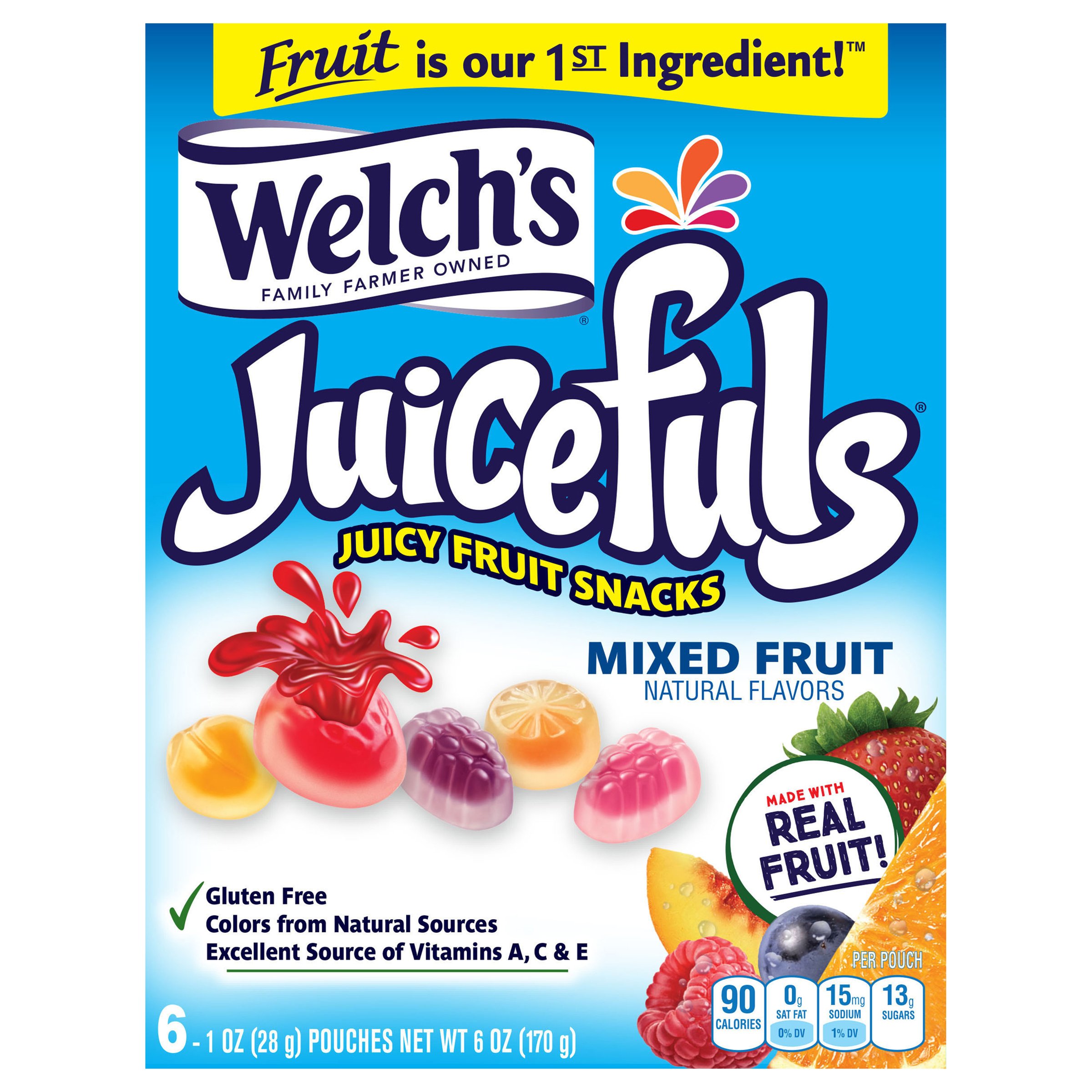 Fruit Snacks - Welch's From fresh fruit slushies to gummy snacks to frozen mixed fruit, Welch’s has all the snacks you need for one delicious treat. Fruit Snacks Learn More Fresh Fruit Learn More Organic Juice Ice Bar Learn More Sparkling Soda Learn More 100% Juice Slush Pouch Learn More Powdered Drink Mixes Learn More Protein Smoothies Learn More Gelatin Mixes Mixed Fruit Snacks - Welch’s® Fruit Snacks Welch's® Fruit Snacks. Available in: BAGS: 1.75, 2.25, 4, 5, 8, and 28oz bags. BOXES: .8oz bags in a variety of box sizes (10, 22, 40, 66, 80, 90 count)